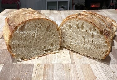 I bake real sourdough (fermented- no yeast!) with a mild, approachable flavor—my sourdough is not overly tangy.